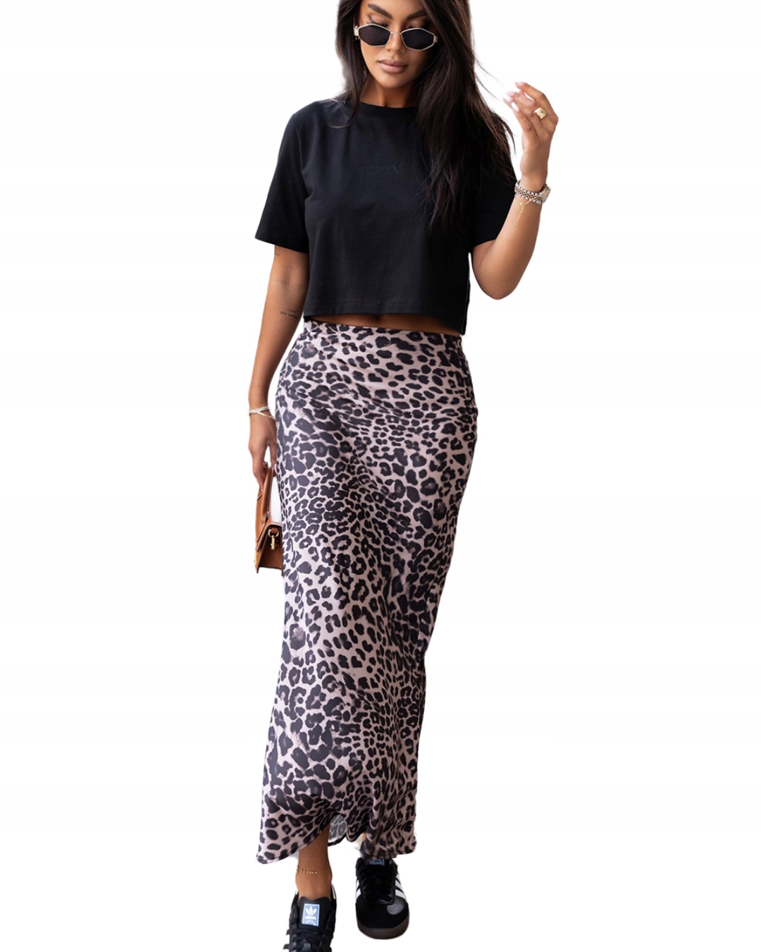 SPÓDNICA DŁUGA W PANTERKĘ PANTERKOWA ZWIERZĘCY WZÓR WISKOZA LEKKA SATYNA S