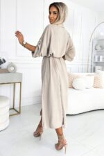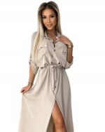 531-1 Szmizjerka midi ze złotymi guzikami i wiązaniem – BEŻOWAROZMIAR : UNIWERSALNY